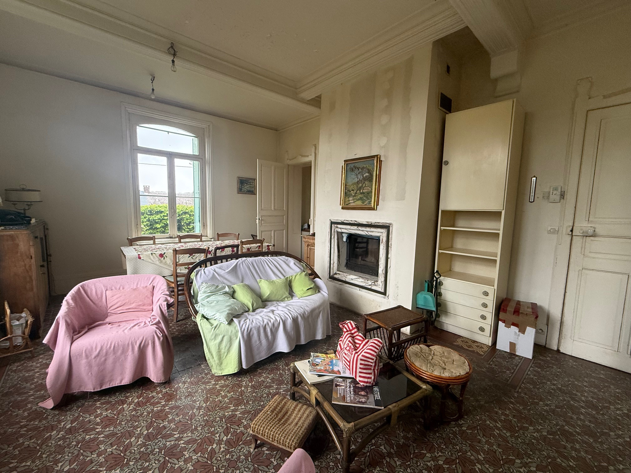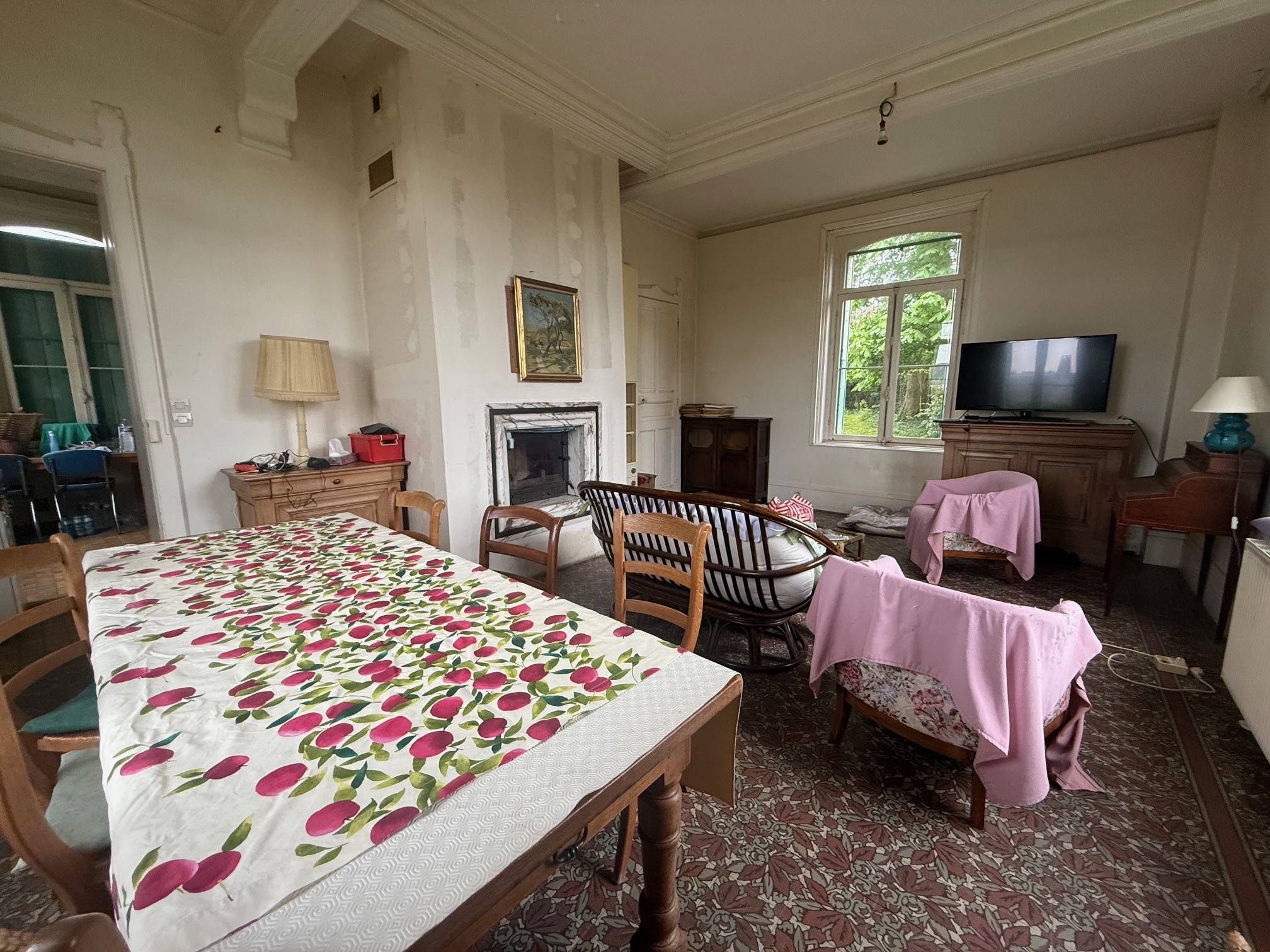 – Au rez-de-chaussée : entrée, séjour avec insert, cuisine, salle de bains et wc.