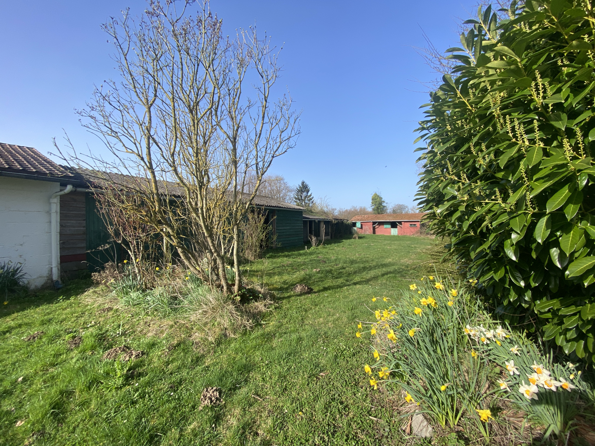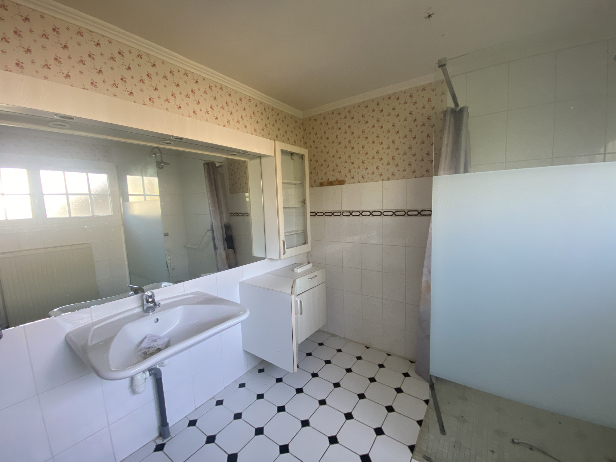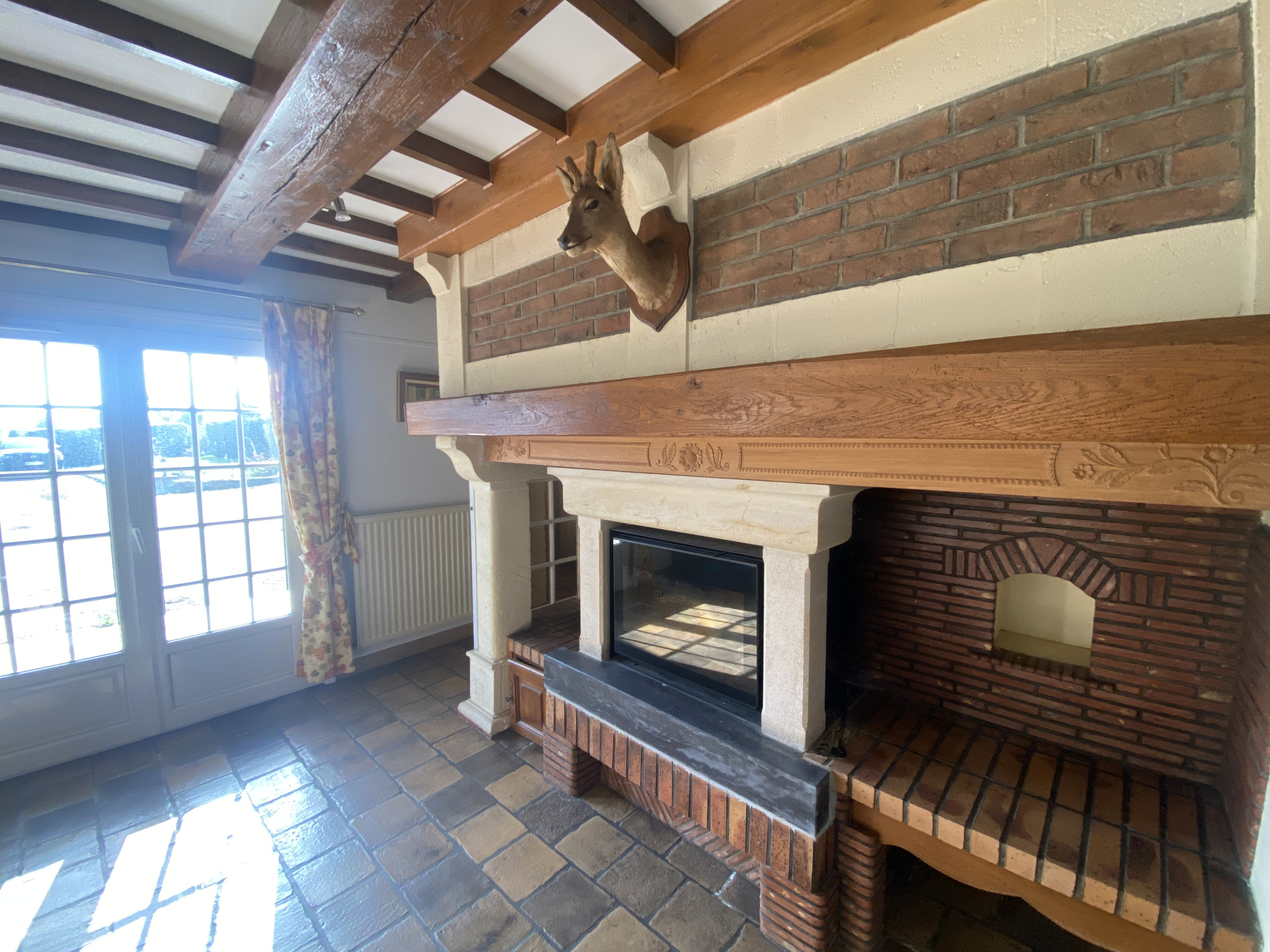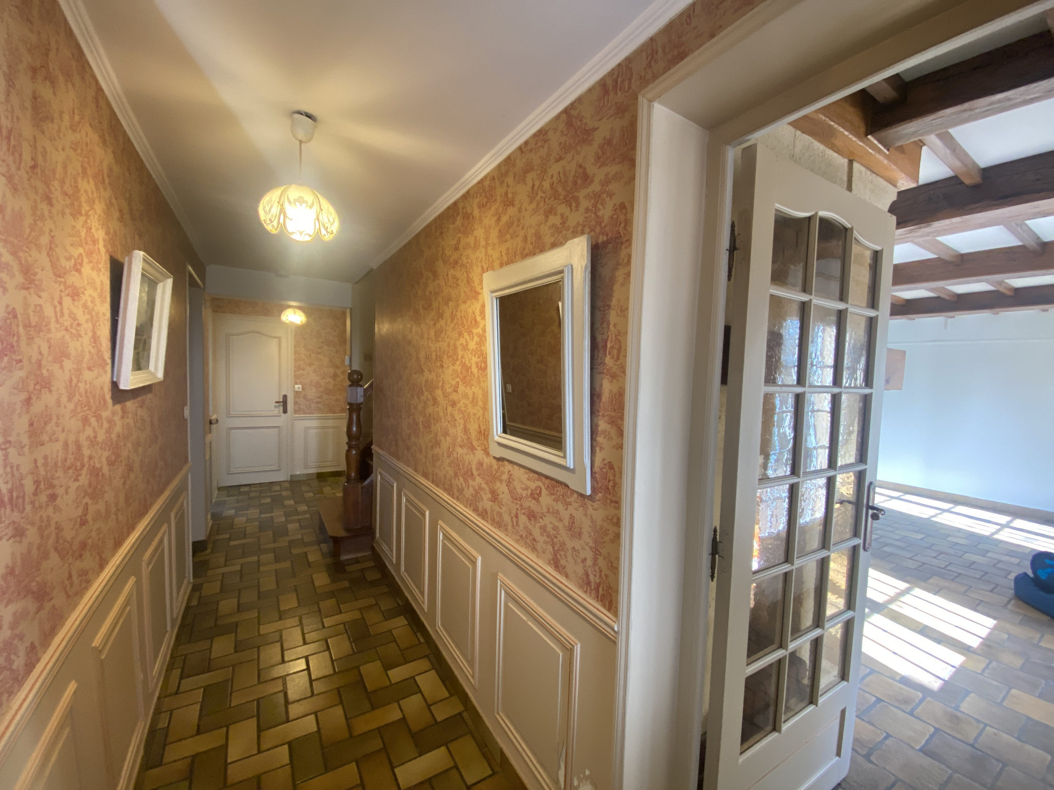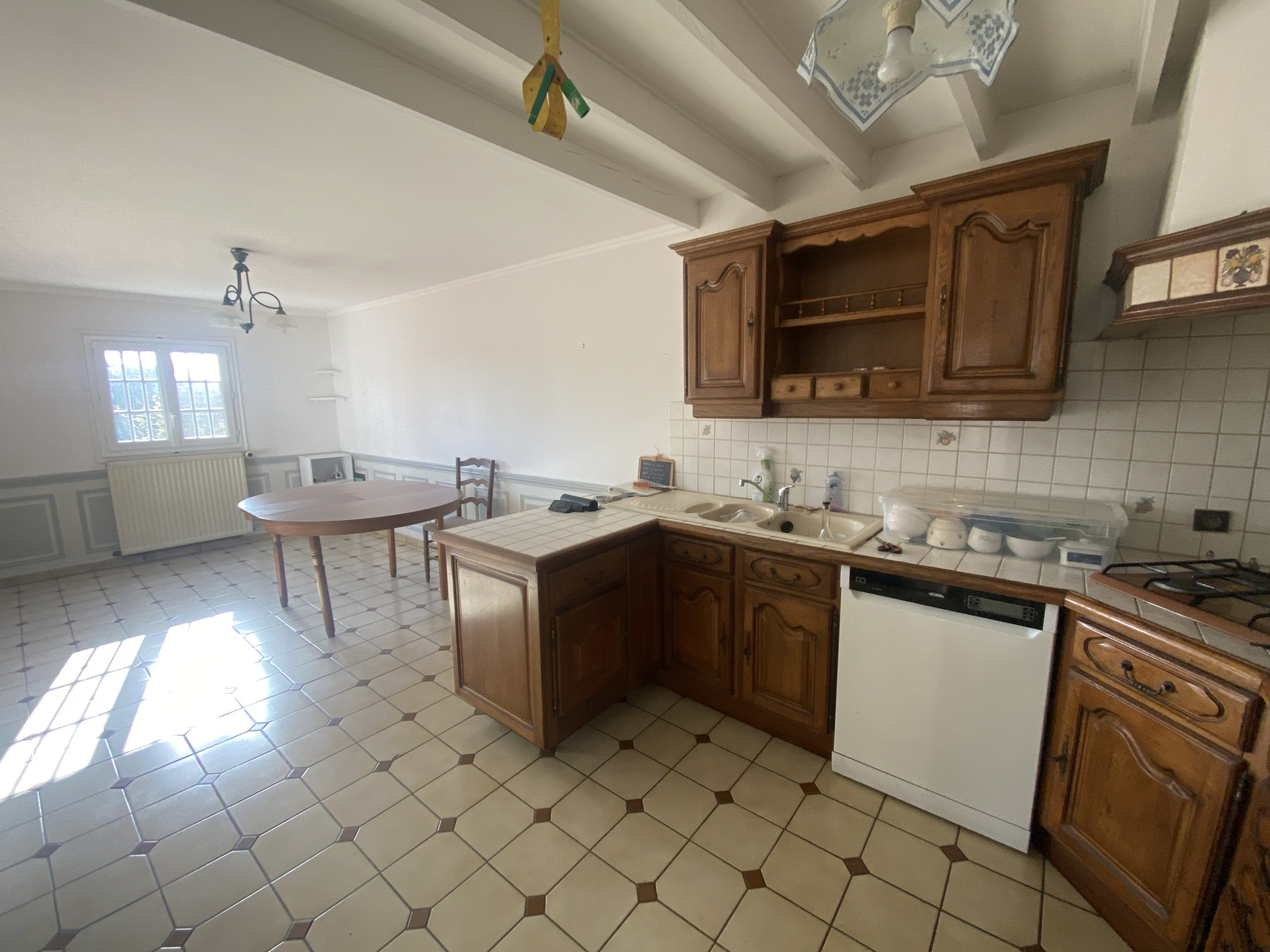 Maison comprenant au rez de chaussée, cuisine aménagée ouverte sur salle à manger, couloir desservant un séjour équipée d’une cheminée, chambre, salle de douche, wc et cellier.