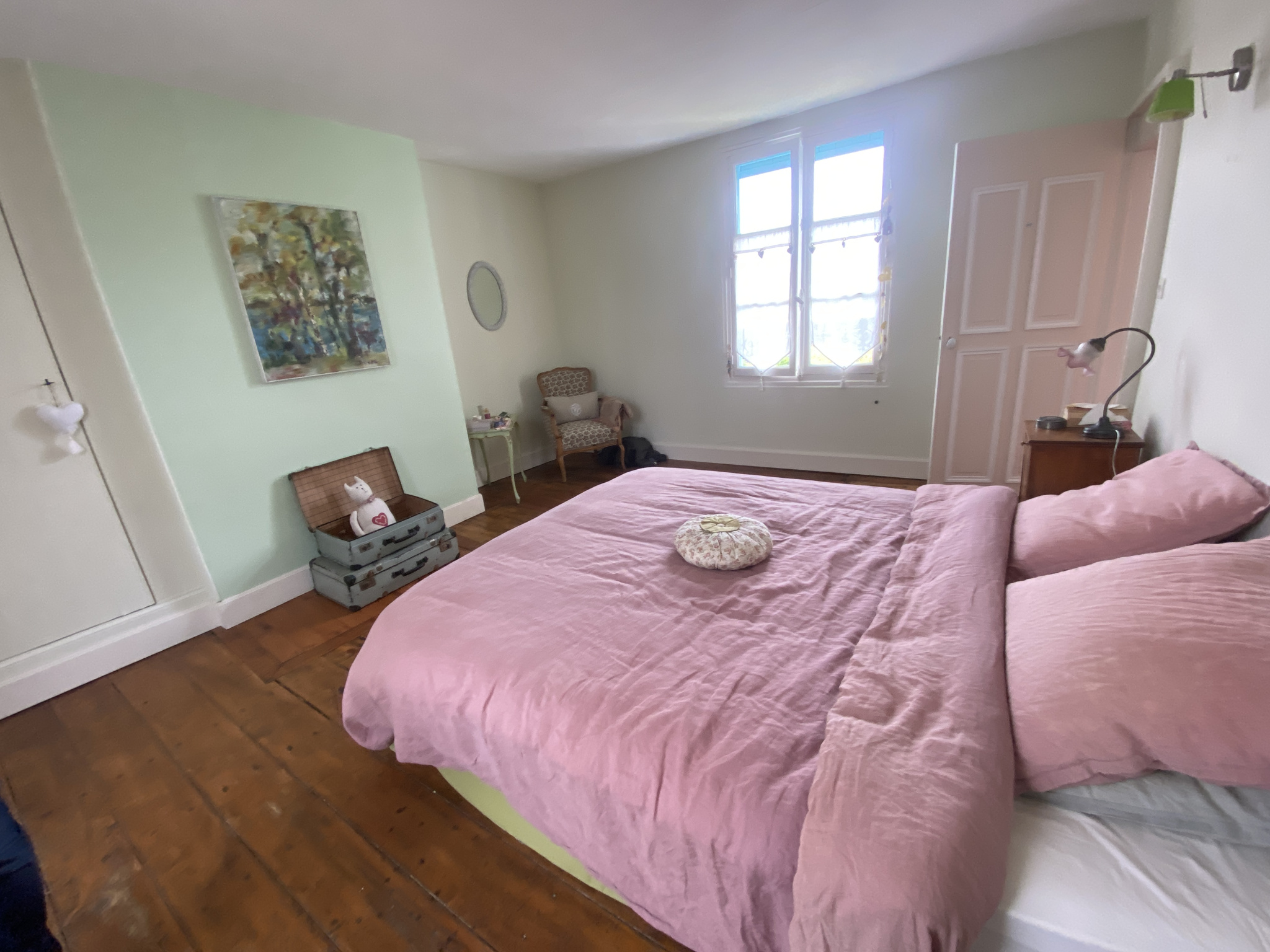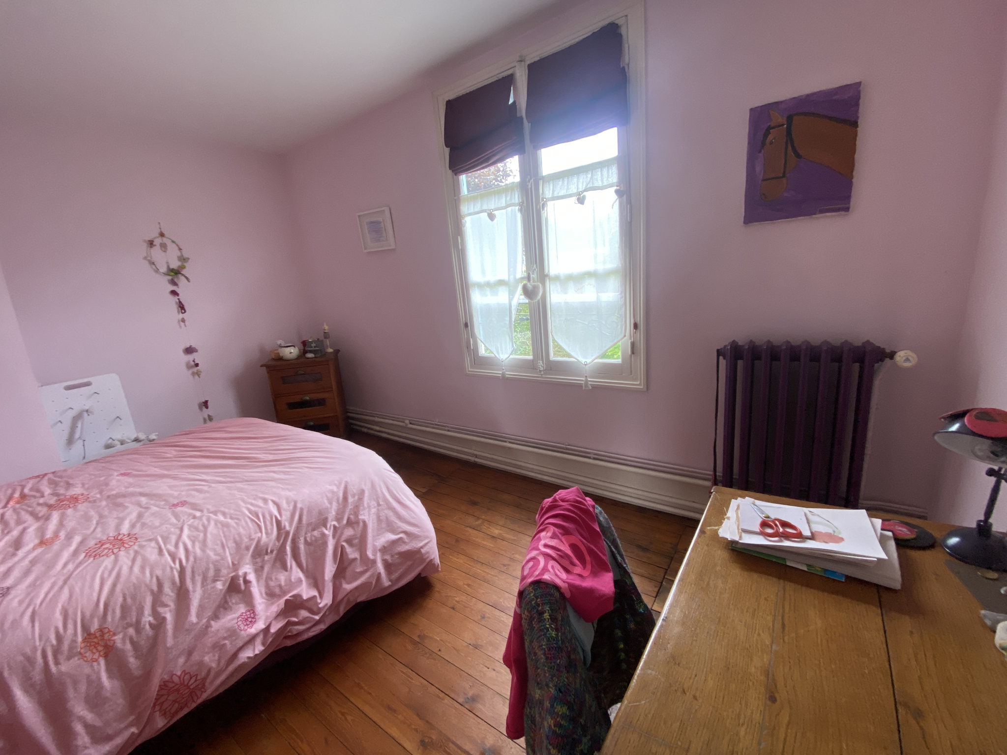 A l’étage : 4 chambres dont 2 avec point d’eau, salle de bains, wc et bureau.