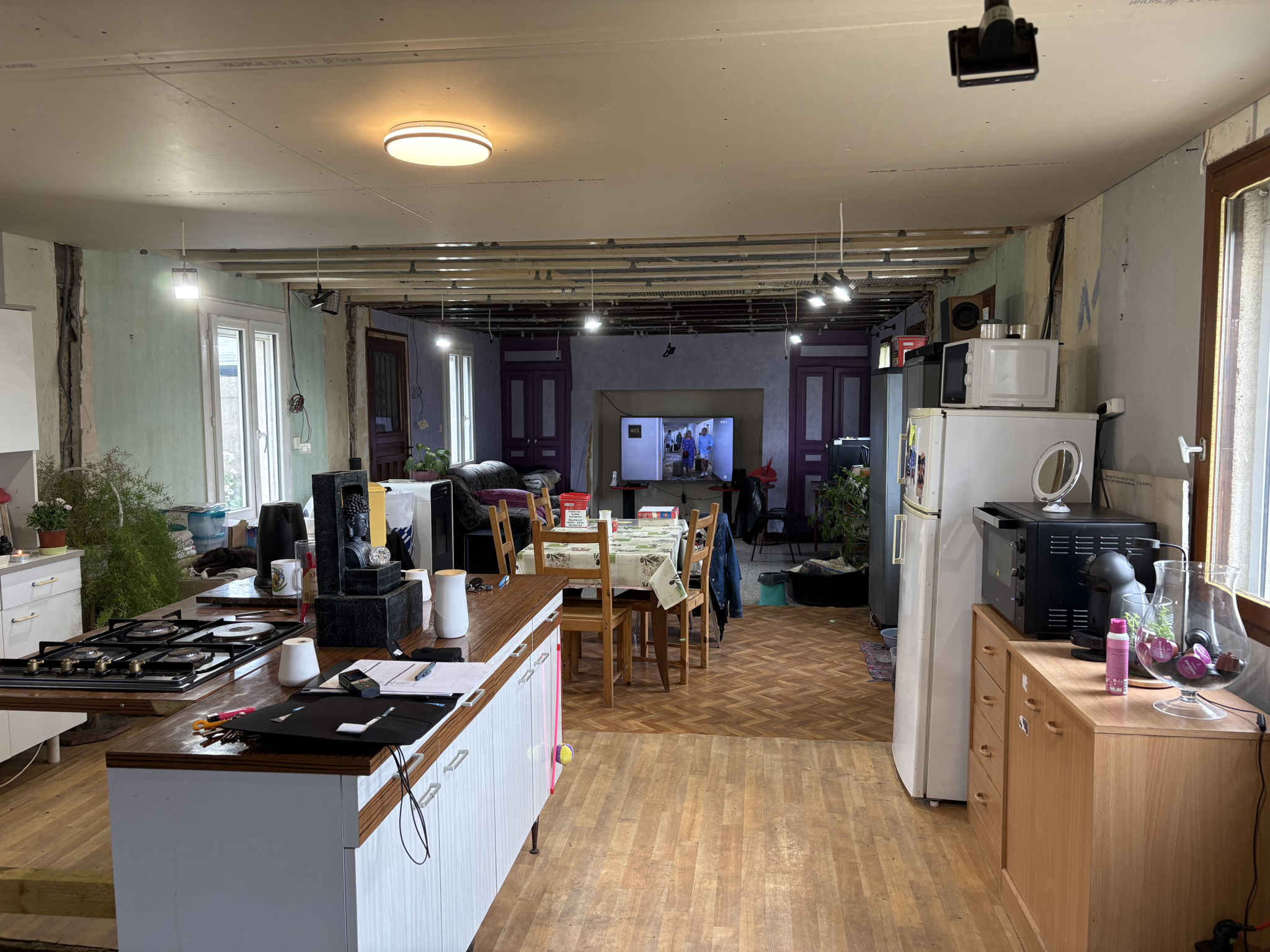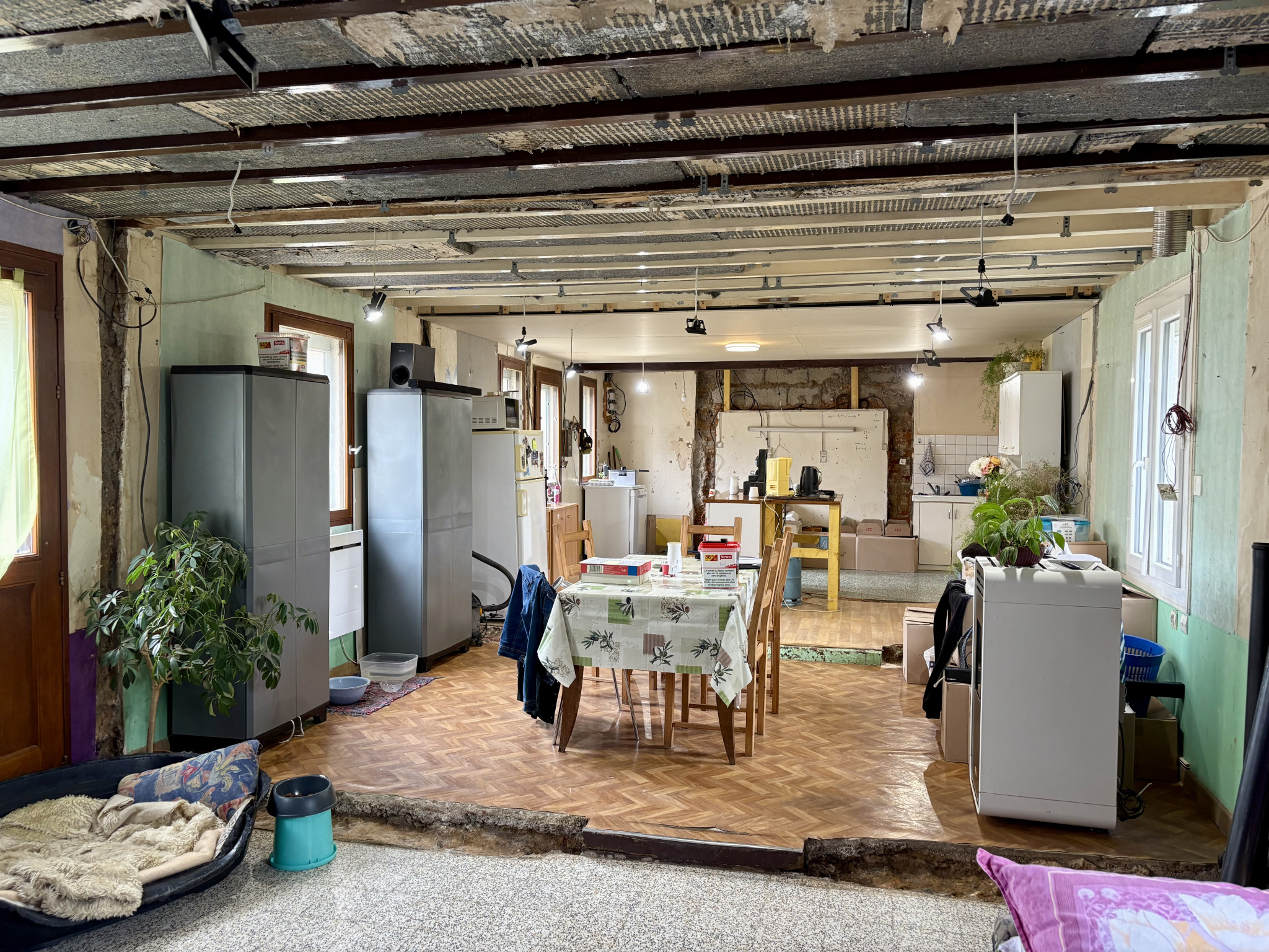 Première habitation : cuisine, salon, salle à manger, salle de douche avec wc, et pièce.Grenier isolé accessible depuis l’extérieur.