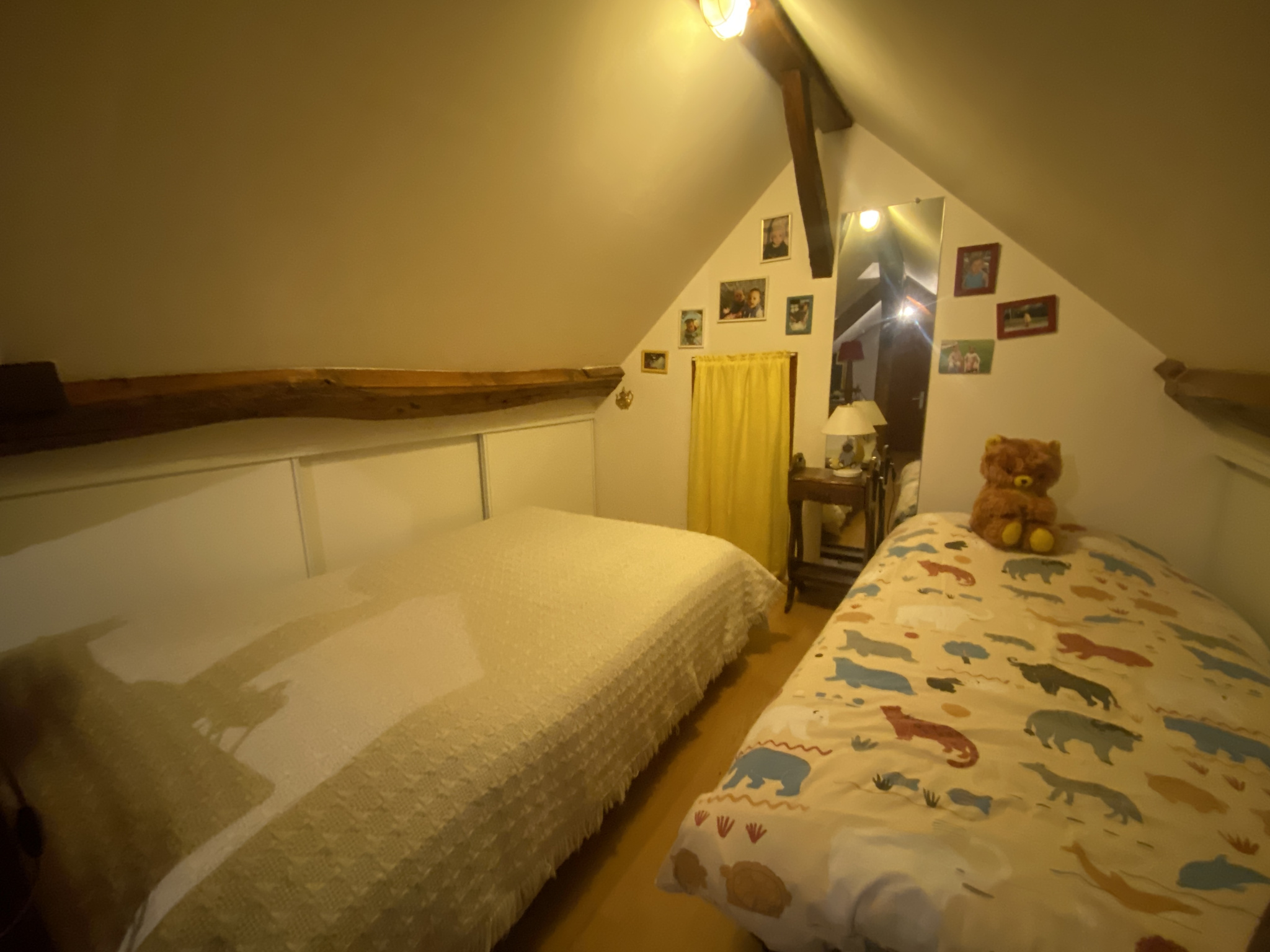 A l’étage se trouve une chambre en mezzanine et une pièce, salle d’eau.