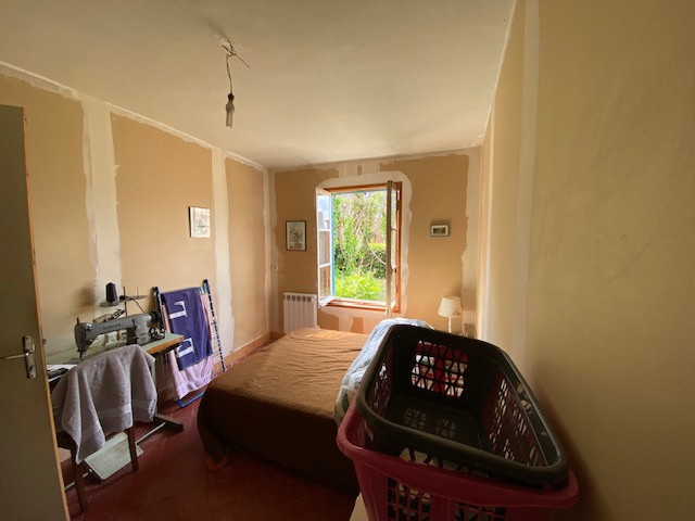 A l’étage : grenier non aménagé. La maison dispose d’une cave voutée. Chauffage bois avec l’insert du séjour complété par les radiateurs électriques.