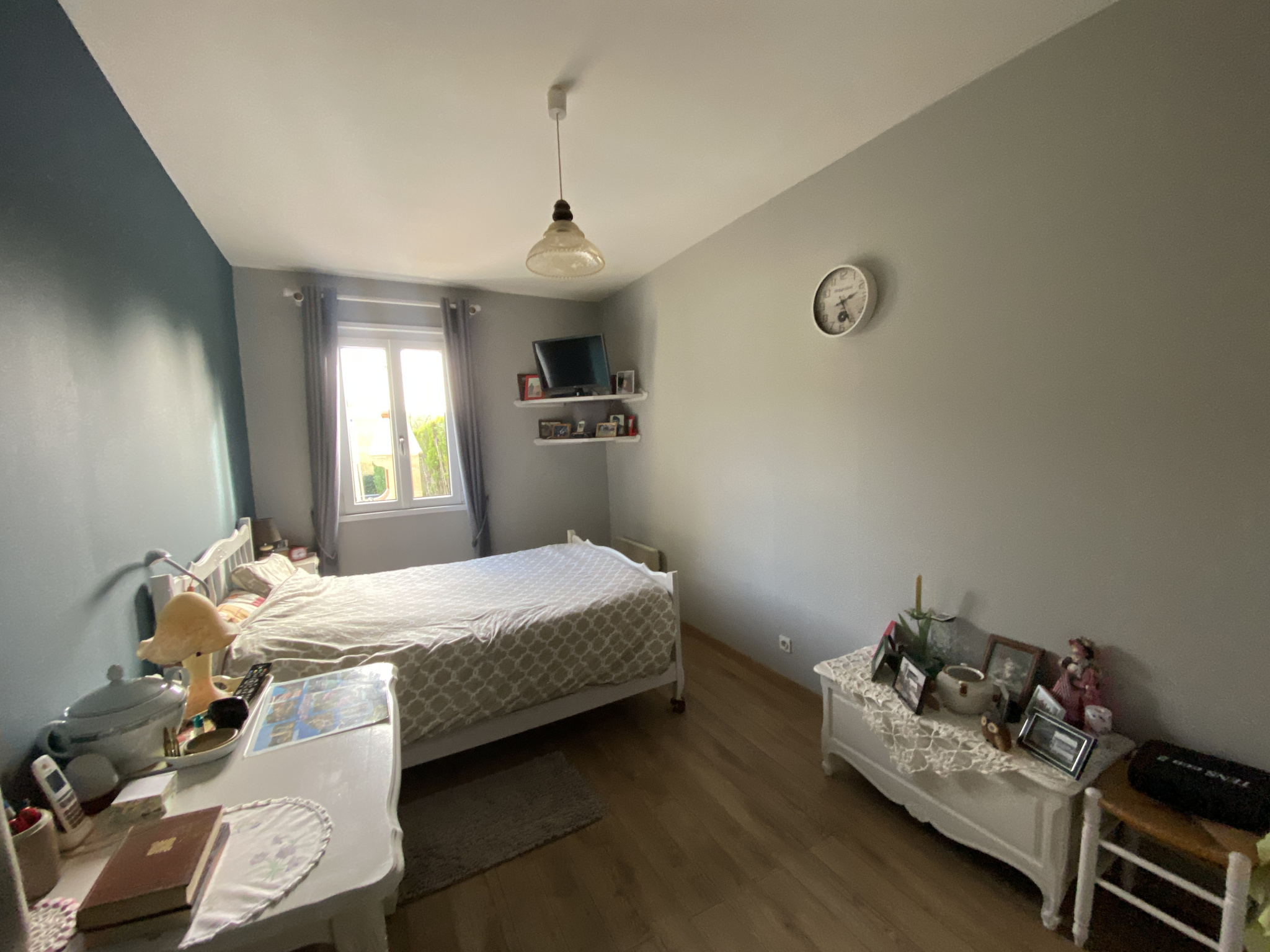 Comprenant : entrée, cuisine aménagée ouverte sur le séjour disposant d’un poêle à granulés, couloir desservant 3 chambres, salle de douche et wc. Grenier.