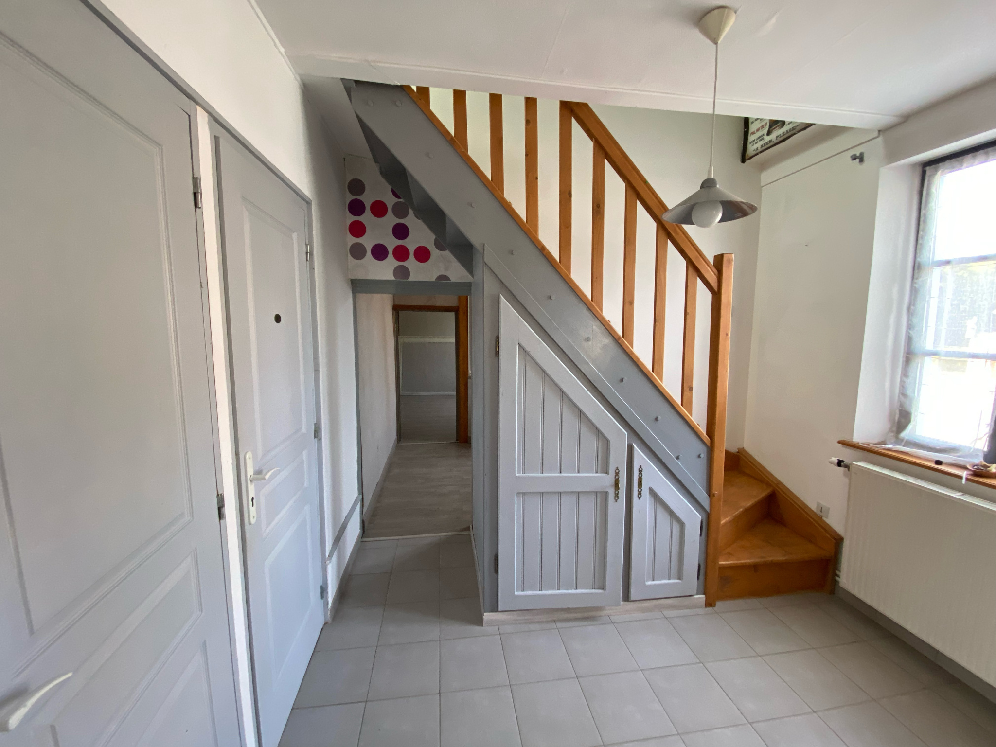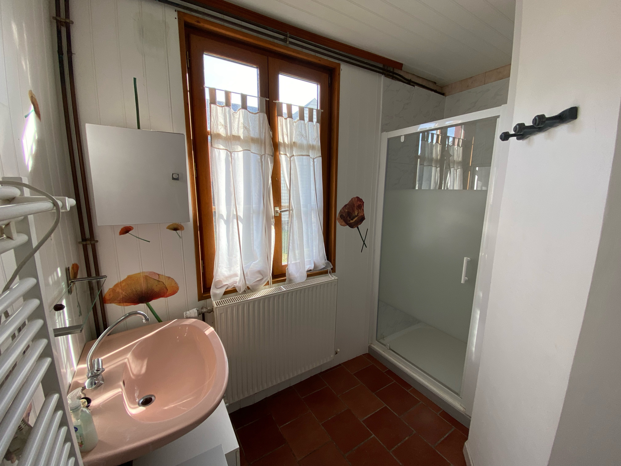 La maison d’une surface habitable de 96m2 comprend au rez-de-chaussée : cuisine aménagée, séjour avec cheminée tubée, salle de douches, WC, bureau, chambre et chaufferie.