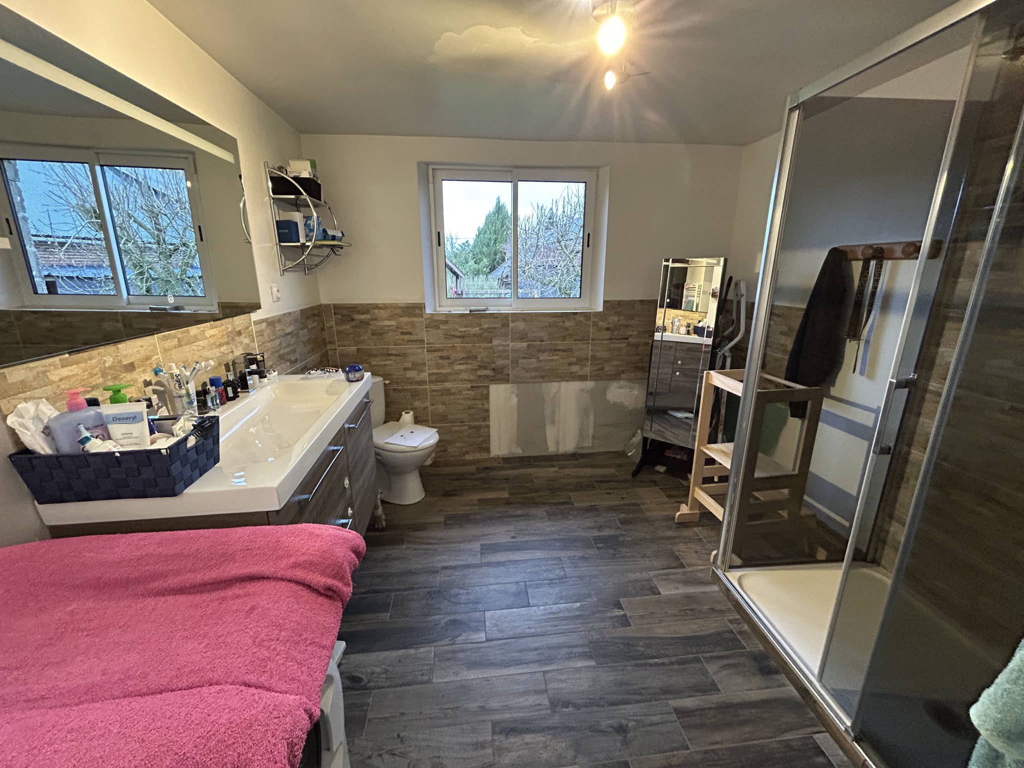 Menuiseries en double vitrage. Chauffage bois et électrique.