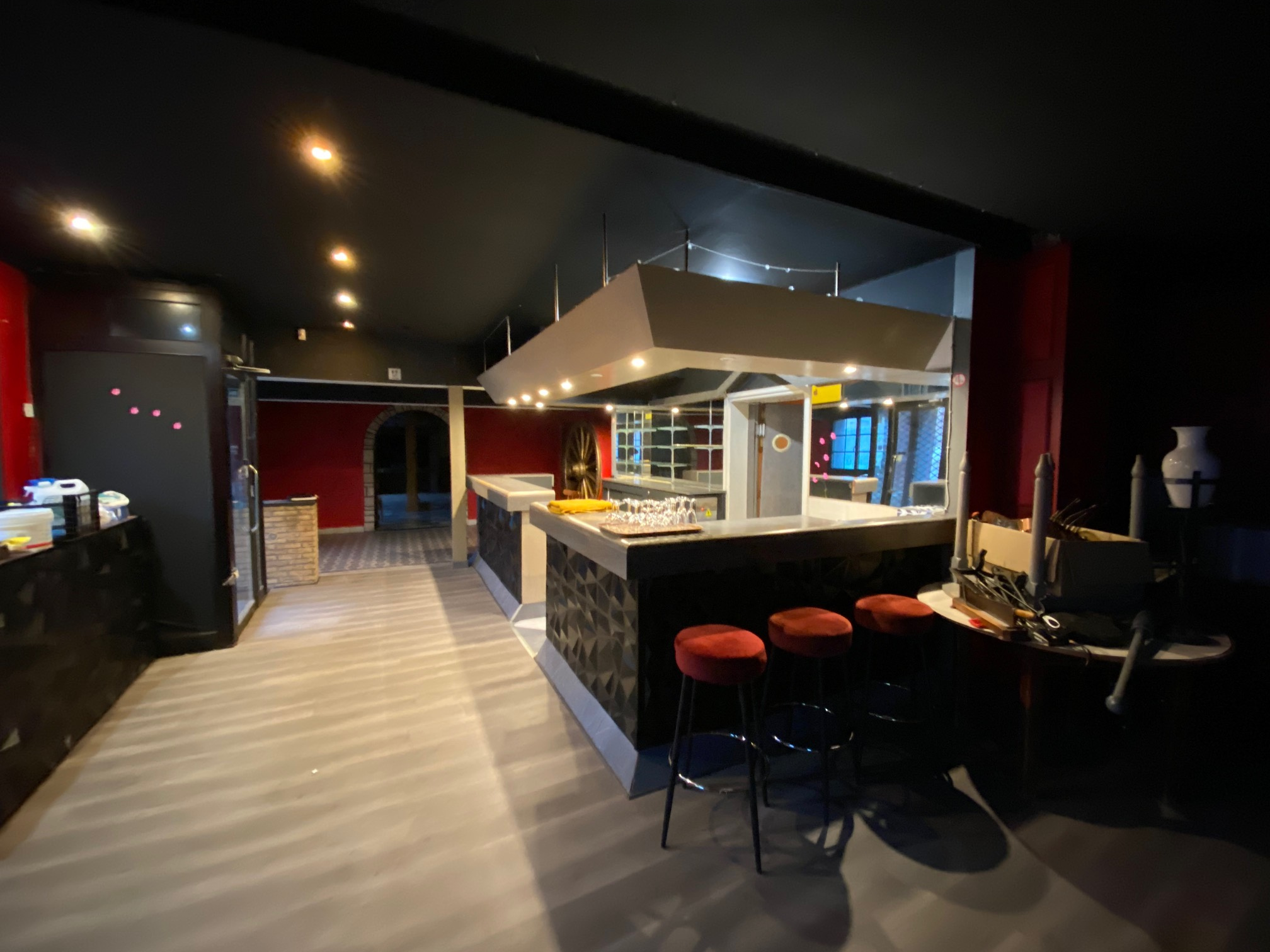 Les locaux professionnels comprennent : bar, salle de restaurant, sanitaires, salle de réception, cuisine et annexes (vestiaires, local de repos, blanchisserie et réserves). Parking et cour avec garage et batiment. Cave.